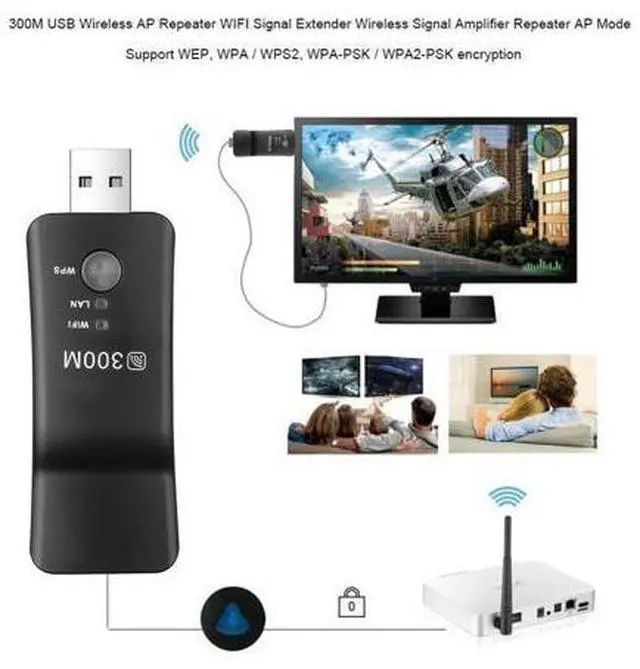 Note: The USB interface is only powering for this wifi repeater, It is not a TV adapter. If your TV has a Lan port or your TV can receive Wifi, this item will be compatible with your TV.