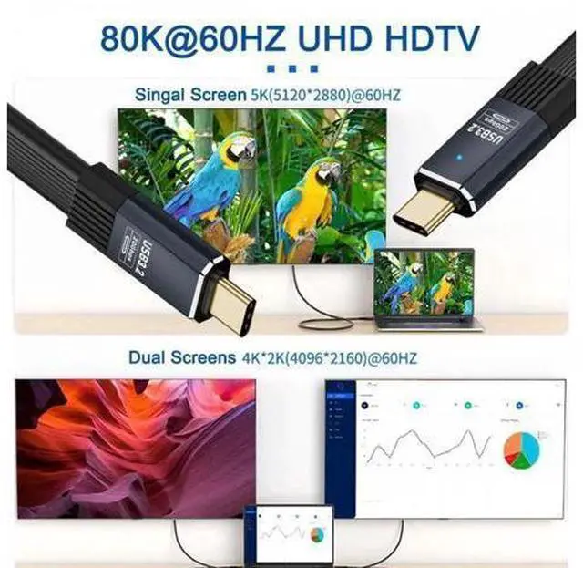 Video Output: This USB4 Cable enables to connect from your USB4 or thunderbolt3/4 Port equipped Devices to your USB-C Monitors, It supports Single 8K@60hz, 5K@60Hz or 4K@60Hz max. video Resolution in your external displays. (please make sure your monitor's Type-c port support DP Alternate Mode for Video. ) 2) USB 4.0 Max 20Gbps
