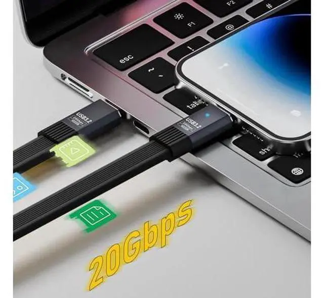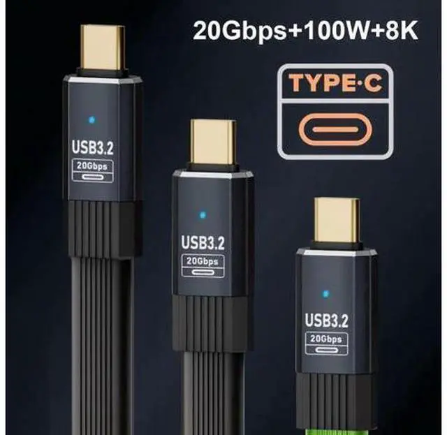 USB4 Cable 20Gbps Flat Slim FPC Cable with 100W and 8K@60Hz 5K@60Hz USB 4.0 Compatible with Thunderbolt3/4 1) 8K/5K Ultra HD