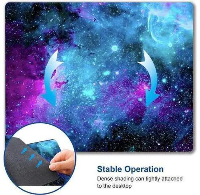 Size: 9.5 x 7.9 x 0.12 inches (240mm x 200mm x 3mm). 3mm thickened design to adapt to all surfaces. 2. Ultra-smooth Surface Texture is denser with 230°F and high pressure treatment. Mouse can be quickly moved and accurately positioned on the slick surface. It is optimized for fast movement while maintaining excellent speed and control. 3. Non-slip rubber base Dense shading and anti-slip natural rubber base can firmly grip the desktop. Premium soft material for your comfort and mouse-control. 4. Washable Design and Fade Prevent This mouse mat is made of which has great locking-color effect. Liquid stains can be cleaned with water for continuous use. And it will not fade with repeated cleaning. 5. Wide Applicability. Available for all types of mouse, LASER & OPTICAL. Ideal size for daily use.
