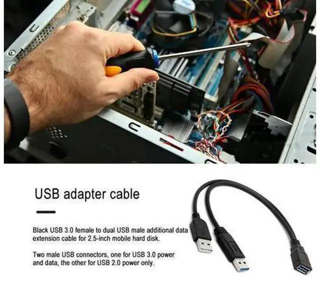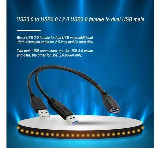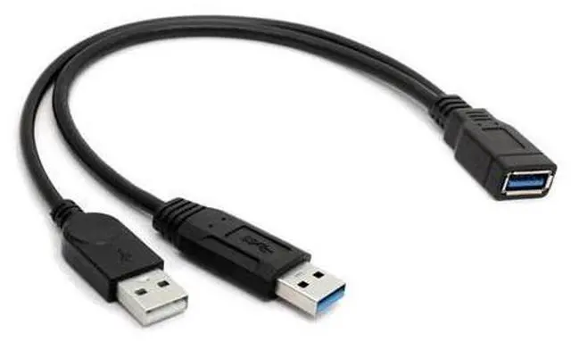 • Extra Power Data Y Extension Cable USB 3.0 Female to Dual USB Type A Male Black Power Data Splitter Extension Cable