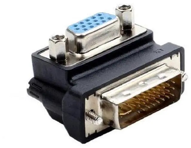 China Certification: NONE DVI-I 24+5 Pin Male to VGA 15 Pin Female 90 Degree Convertor Adapter Black Right Angle DVI-I 24+5 Male to VGA DB15 15Pin Female HDTV Connector