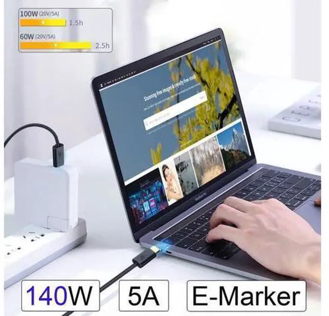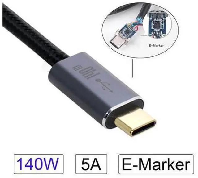 Type-C USB-C Male to Male USB 2.0 Version Data Cable Support E-Marker 140W for Laptop & Phone. Reversible Design and 140W/100W Type C connector, Reversible plug orientation & Cable direction. Build-in Emarker chipset, Support Scalable 140W/100W power charging and usb 2.0 480Mbps data. Alloy-Shell overmold and sleeve cable. Work for Laptop & Tablet &Mobile Phone & Hard Disk Drive.