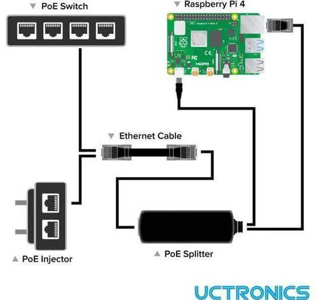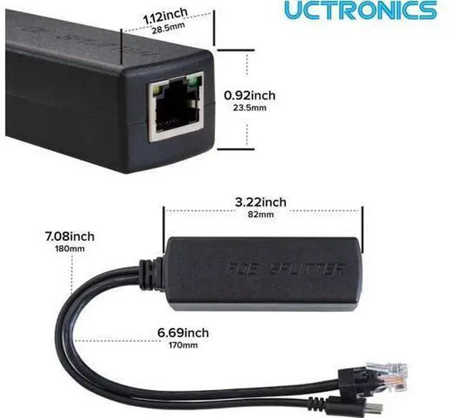 What is it - A UCTRONICS PoE splitter to split the PoE signal into 5V USB-C power supply and gigabit Ethernet in RJ45 so that non-PoE devices can be powered over Ethernet. What is PoE Deliver power and data with a single Ethernet cable for fewer wall plugs and messed cables. Extend powerline to where no AC outlets are nearby, up to 300 feet away from the power source Why PoE to USB-C A cost-effective way to add plug-and-play PoE support to 5V USB-C powered devices and make full use of PoE switches, or for a Raspberry Pi 4 setup where a PoE HAT is not applicable What else needed - You need an IEEE 802.3 af compliant PoE switch or injector to serve as the PSE (Power Source Equipment) and an Ethernet cable with PoE signal to feed the splitter.