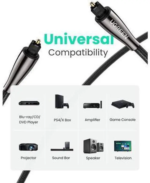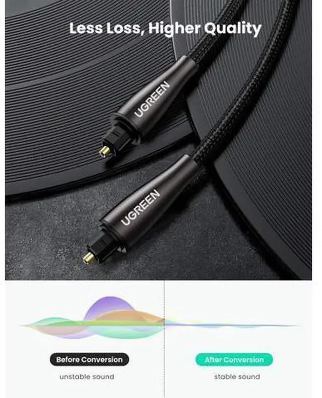 High Sound Quality: The fiber-optic cable prevents electromagnetic and radio frequency noise that an electrical cable may incur, offering clearer audio.