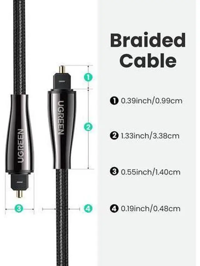 Durable Material: The braided that protects the cable from cuts, scratches, and nicks. The Zinc alloy shell makes this tiny optical connectors anti-scratch for durable usage. With removable rubber tips to protect the cable when it's not in use.