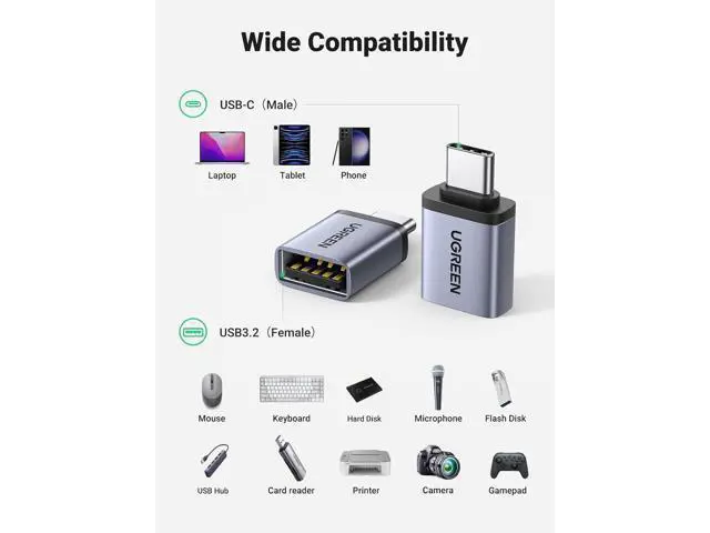 Super Fast Data Transfer: The 10Gbps high-speed data transfer allows you to quickly transfer files via USB A Female to USB C Male Adapter in seconds.