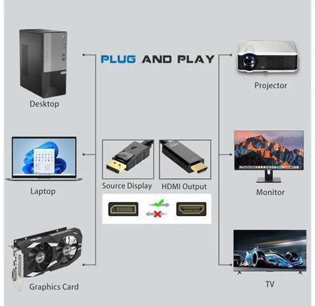 Performance: The Display port to HDMI cable supports up to 4K 60Hz (3840 x 2160) resolution and is backward compatible with 2K 60Hz (2560x1440p) 1920x1080p 120HzEasy to