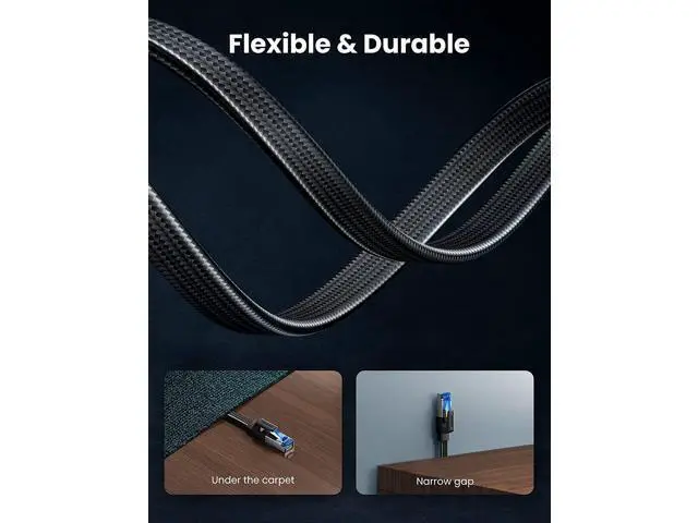 Flexible Flat Design: UGREEN Cat 8 Ethernet Cable adopts a unique flat and thin design, which allows for a cleaner and safer installation. Whether you want to install it under the door, through the window, or hidden under the carpet, it can be done very easily. It's very suitable for indoor wiring.