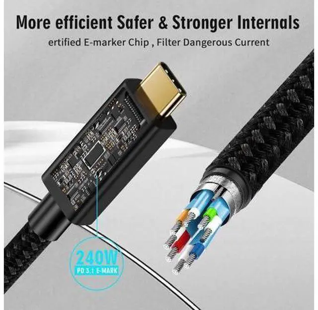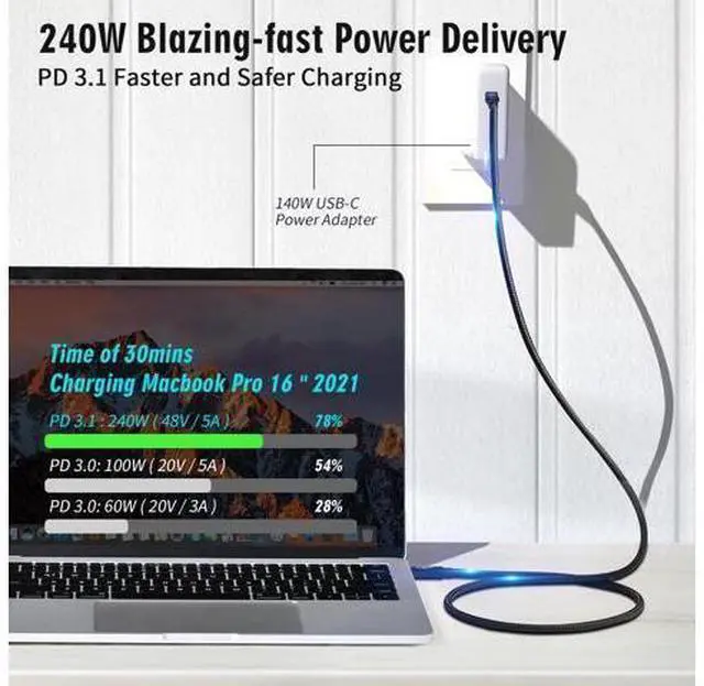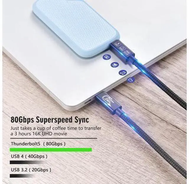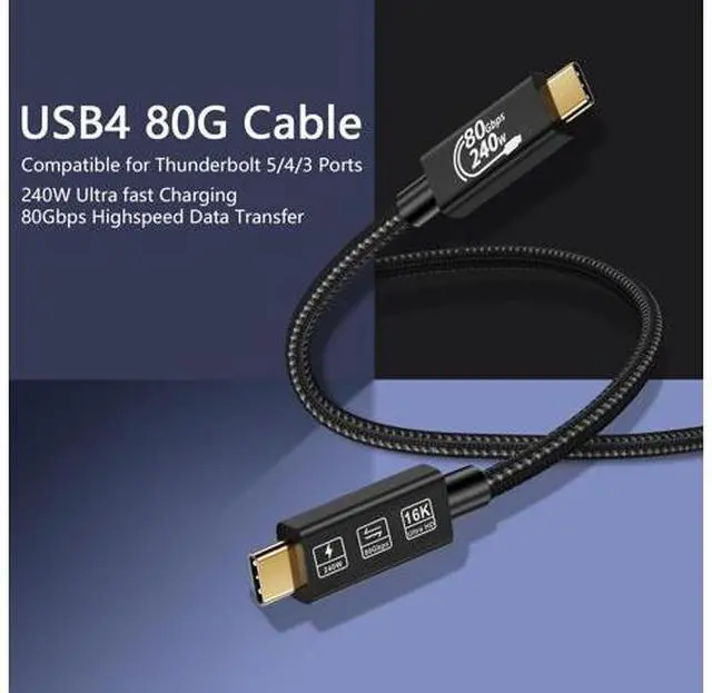 W fast charging technology: 's USB C 4.0 cable can support up to 240 W (48 V/5 A) USB PD 3.1 power supply. This USB C cable can fully meet the requirements of fast charging. It also provides stable performance and voltage to protect your device from overheating. Thunderbolt 5 transfer rate 80 gbps: USB 4.0 gen4 cable compatibility Thunderbolt 5 to allow up to eight times faster data transfer than USB 3.0. With transfer rates of up to 80 Gbps, the Thunderbolt 5 cable can download a 20 GB 4K film in less than a second. USB 4 devices allow faster transmission and are ideal for current cables.