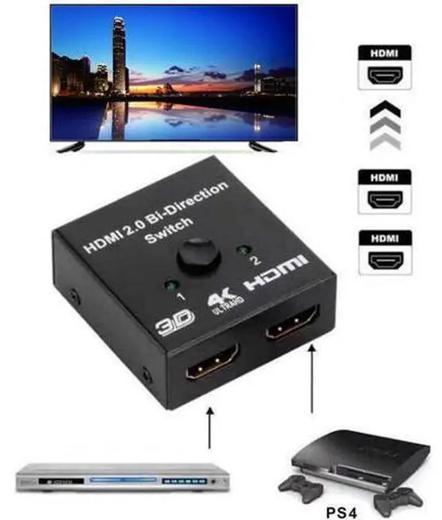 • WIDELY USED: HDMI Splitter Switcher suitable for most devices with standard HDMI interface. Input: XBox, Nintendo Switch, Blu-ray DVD, PS3 / PS4, PC, etc. Output: projector, display, LCD TV, HDTV, etc.
