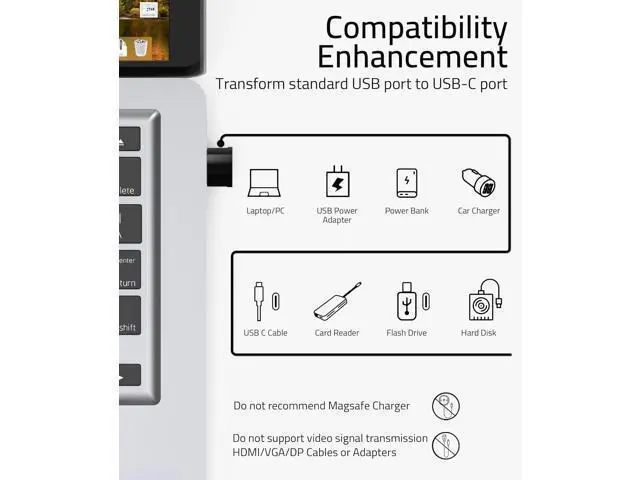 Compatibility: Turning USB ports into USB-C ports to connect USB-C peripherals to devices with USB-A ports built-in. This USB C adapter enables you to connect phones tablets flash drives mice hubs and other USB-C devices to your laptops and chargers with normal