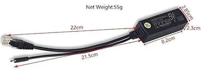 Power Output Port: 5V 2.4A Micro USB Power Plug Compatible with 44-57V DC voltage, overvoltage protection Support IEEE 820.3 af PoE Switch, 48V Unsolicited Power Over Ethernet PoE Switch or Ethernet PoE Adapter, 48v injector. For gigabit PoE switches users, gigabit splitter U515902 is recommended Suitable for Android Tablets, Dropcam, Raspberry Pi Micro USB.