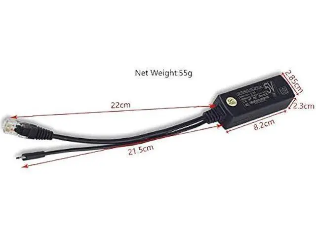 Power Output Port: 5V 2.4A Micro USB Power Plug Compatible with 44-57V DC voltage, overvoltage protection Support IEEE 820.3 af PoE Switch, 48V Unsolicited Power Over Ethernet PoE Switch or Ethernet PoE Adapter, 48v injector. For gigabit PoE switches users, gigabit splitter U515902 is recommended Suitable for Android Tablets, Dropcam, Raspberry Pi Micro USB.