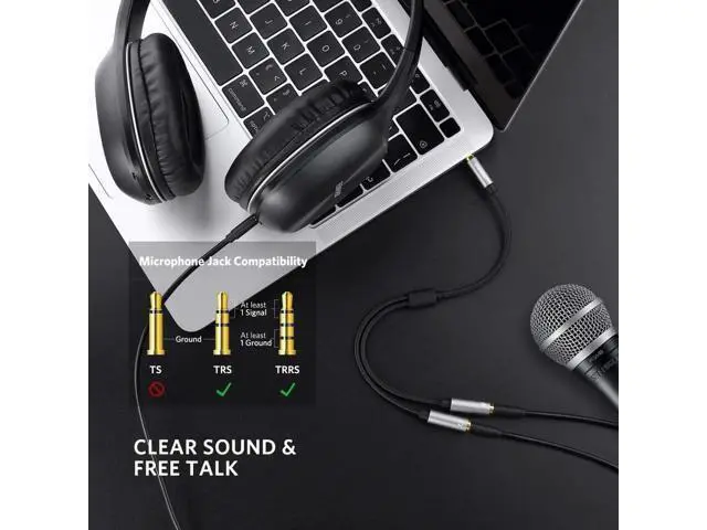 Two: 3.5 mm headset splitter cable enables you to easily connect your headsets with separate audio&mic plugs to your new laptop, smartphone, game controller with 3.5 mm TRRS jack, such as PS4, Xbox One. Extend a mic port to your smartphone/ 3.5 mm single hole laptop for voice chat, record vlog, live video sharing.