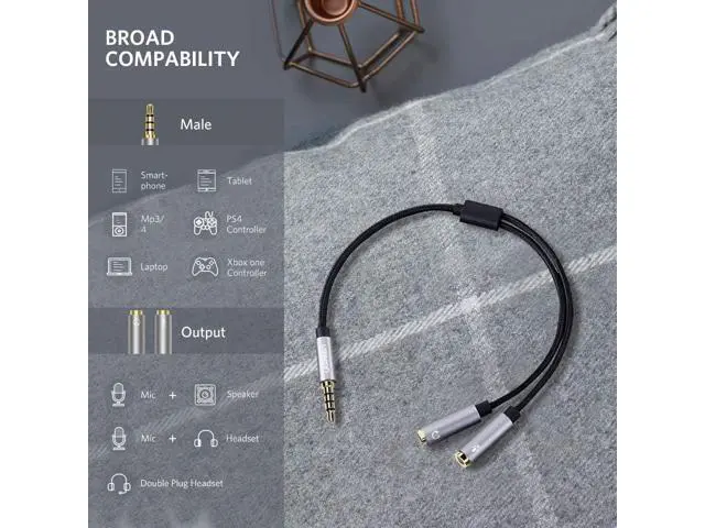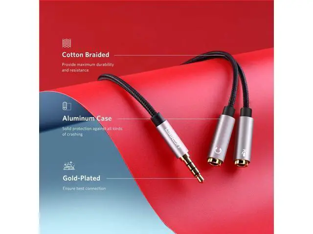 Performance Adapter: 3.5 mm male to 2 female Y Splitter cable made of enameled oxygen-free copper for better sound quality, less loss, maximum conductivity and durability. the braided outer of PC to headset adapter cable is quite robust and flexible, making cables tangle free and everlasting. A Must Have for a