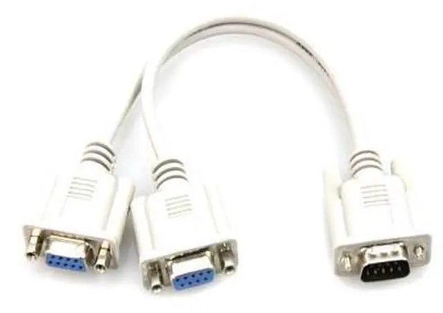 DB9 Male to 2 Female Serial Rs232 Splitter Cable Rs232 Male to 2 Female 2 in One Cable for Cash Register Displays - White One point two serial cable, the product line sequence is directly connected to one connection. A separation of the two male female, used in a variety of POS terminals, scanners and other equipment