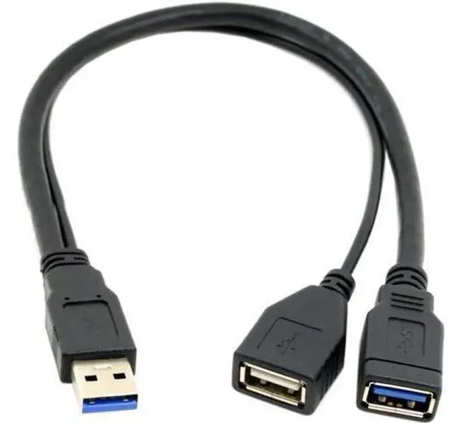 USB 3.0 Splitter Y Cable USB 1 Male to 2 Female Extra Power Data Extension Cable for 2.5" Mobile Hard Disk