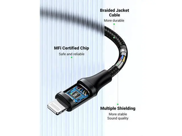 Sound Quality: The Nylon braided outer of the Lightning to 3.5 mm cable is quite robust and flexible, making cables tangle-free and everlasting. This cable is made of Oxygen-free copper, ensuring high fidelity sound quality and providing maximum conductivity and durability Slim and portable design, easy to carry around. Premium aluminum alloy shell prevents scratches and rust, more durable.