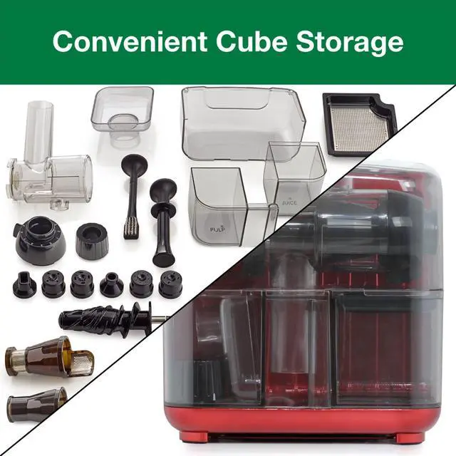 Imagine having one machine in your kitchen that lets you juice fruits, leafy greens and vegetables plus make various pastas, nut butters, nut milks, baby food and sorbets. The Cold Press 365 Cube-Style Slow Juicer & Nutrition System is your 8-in-1 solution for healthy living. Its cold press technology helps eliminate heat and air exposure so that every glass of juice is higher in vitamins, enzymes and nutrients. The powerful 3-stage auger squeezes more juice out of every vegetable, leafy green and fruit for greater juice output with less foam and better taste.