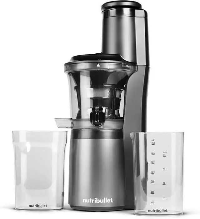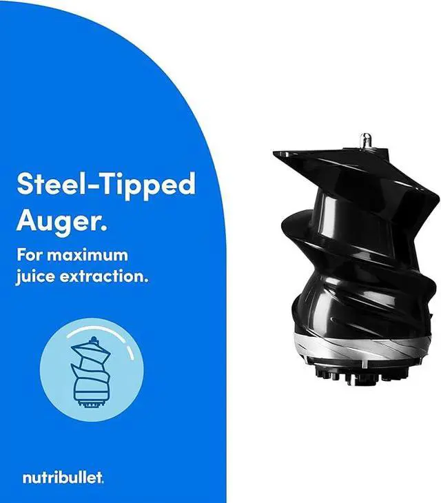Dont let its compact size fool you, the nutribullet Slow Juicer is equipped from top to bottom to handle major juicing. Its wide 3" feed chute fits larger quantities of produce, while its high-torque, low-speed motor and durable steel-tipped auger wring every drop of deep nutrition from your favorite fruits and veggies.