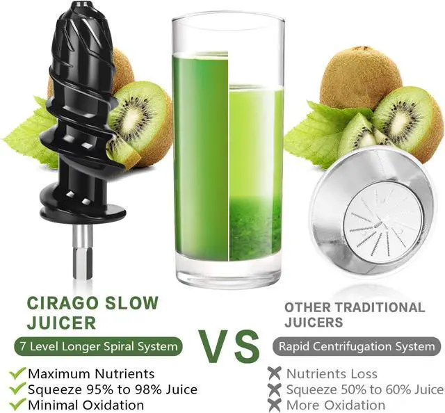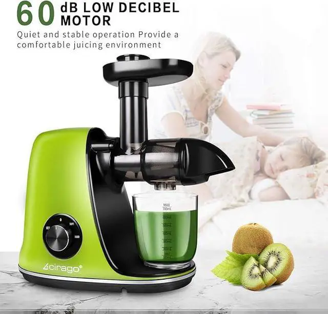 Quiet High-Torque Motor: Engineered with a robust 150W motor, the CIRAGO juicer operates below 60dBquieter than a conversation. This powerful yet silent performance extracts juice efficiently without disrupting household activities or sleep.