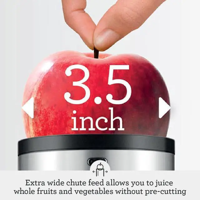 SHORT PREP TIME: Breville juicer' s unique 3.5 inch, extra wide chute feed allows you to juice whole fruits and vegetables without pre-cutting, including carrots, apples, and oranges; Create delicious beverages quickly and easily