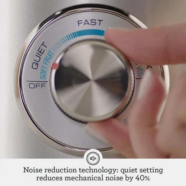 QUIET JUICER WITH NOISE REDUCTION TECHNOLOGY: Imagine efficient juicing performance thats easier on your ears; Featuring a Quiet setting that reduces mechanical noise by 40% to keep your home kitchen peaceful