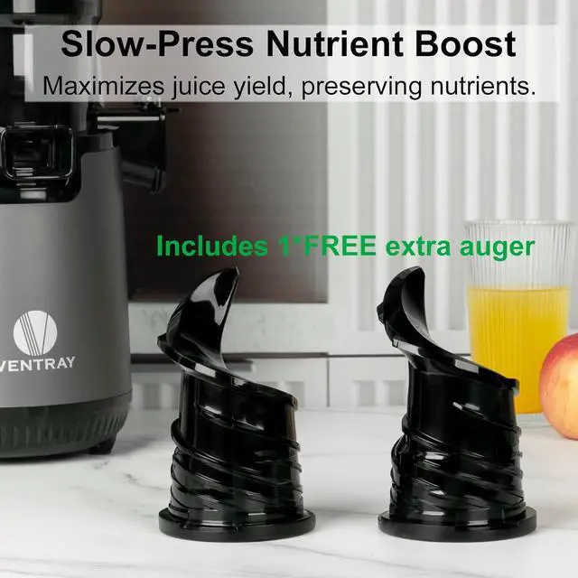 FOOD-GRADE JUICING SCREW - The juicing screw is made of PMMA material, which is harmless to the body. By incorporating a 5-stage squeezing function, this high-quality screw produces healthier and more flavorful juice. *Bonus: Comes with an extra screw replacement for your convenience.