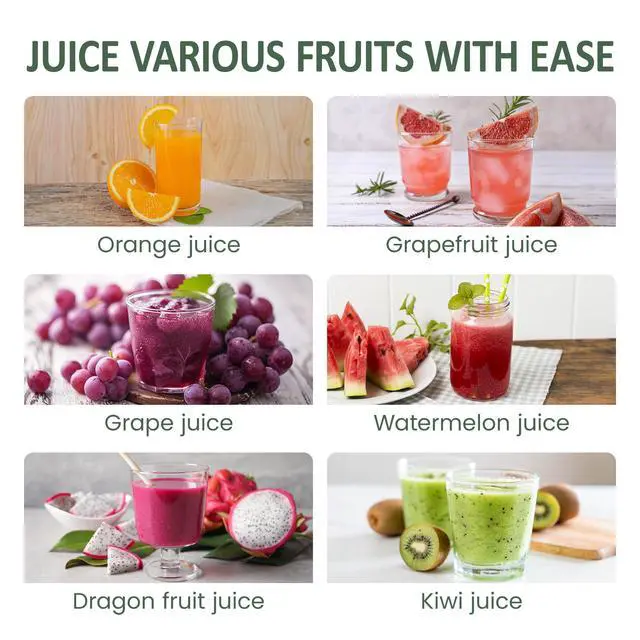 Multi-Function Electric Juicer: Experience the efficient juicing convenience with our powerful electric juicer, designed to tackle an array of fruits with ease. Whether you're juicing citrus like oranges and lemons, or softer fruits such as tomatoes, grapes, and watermelons, this juicer extracts every drop of flavor. Relish the taste of fresh, vibrant juices at your fingertips, anytime you desire!