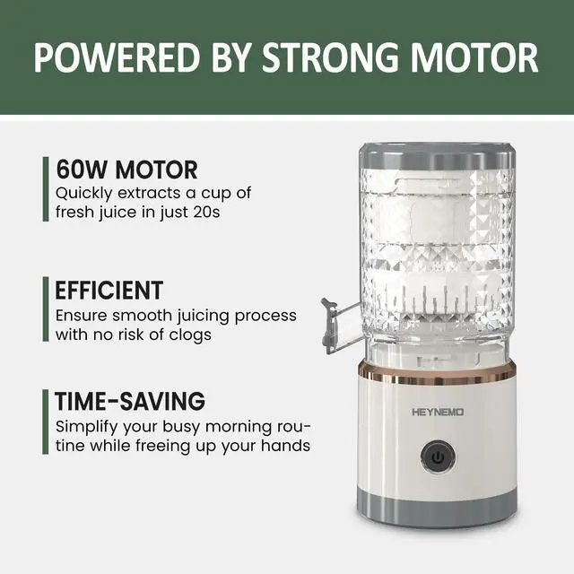 Portable Orange Juicer: Rechargeable design allows you to carry it with you at any time, whether at home or outdoors, picnic, RV camping, enjoy a glass of freshly squeezed juice anytime, anywhere