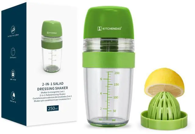 KITCHENDAO 2 in 1 Salad Dressing Shaker Container with Citrus Juicer