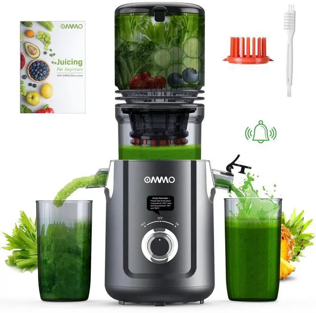 5.1'' Feed ChuteOMMO cold press juicer fits entire apples/carrots with zero cutting - 18% faster prep time & 89% less oxidation for maximum nutrient retention vs small chute slow juicers, keep the original natural flavors of the fruit!