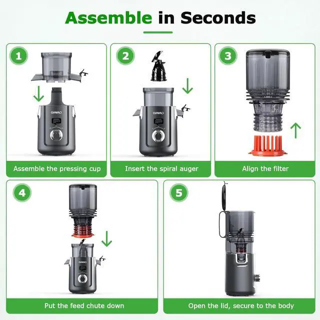 Easy to Clean The juice maker machine equipped with quick-release mechanism, which allows complete teardown faster than brewing coffee. All removable parts fit standard dishwashers - less scrubbing vs traditional juicers.