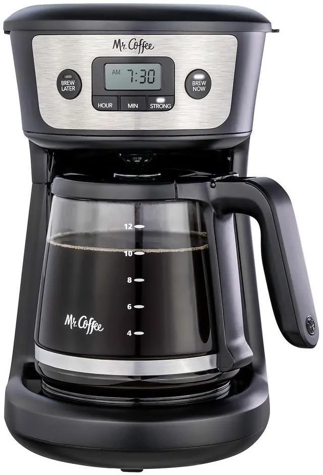 STRONG BREW SELECTOR: Mr. Coffee 12-cup coffee maker brews a bolder cup of coffee at the touch of a button with the Strong Brew Selector. * BREW NOW, BREW LATER: Programmable coffee maker also has a Brew Later feature that allows you to set the coffee maker ahead, and wake up to freshly brewed coffee * AUTO-PAUSE: Grab-a-Cup Auto Pause stops the brewing cycle if you want to grab a cup before brewing is finished * AUTO SHUT-OFF: 4 Hour Auto-Shutoff automatically turns off the coffee maker, so you dont have to