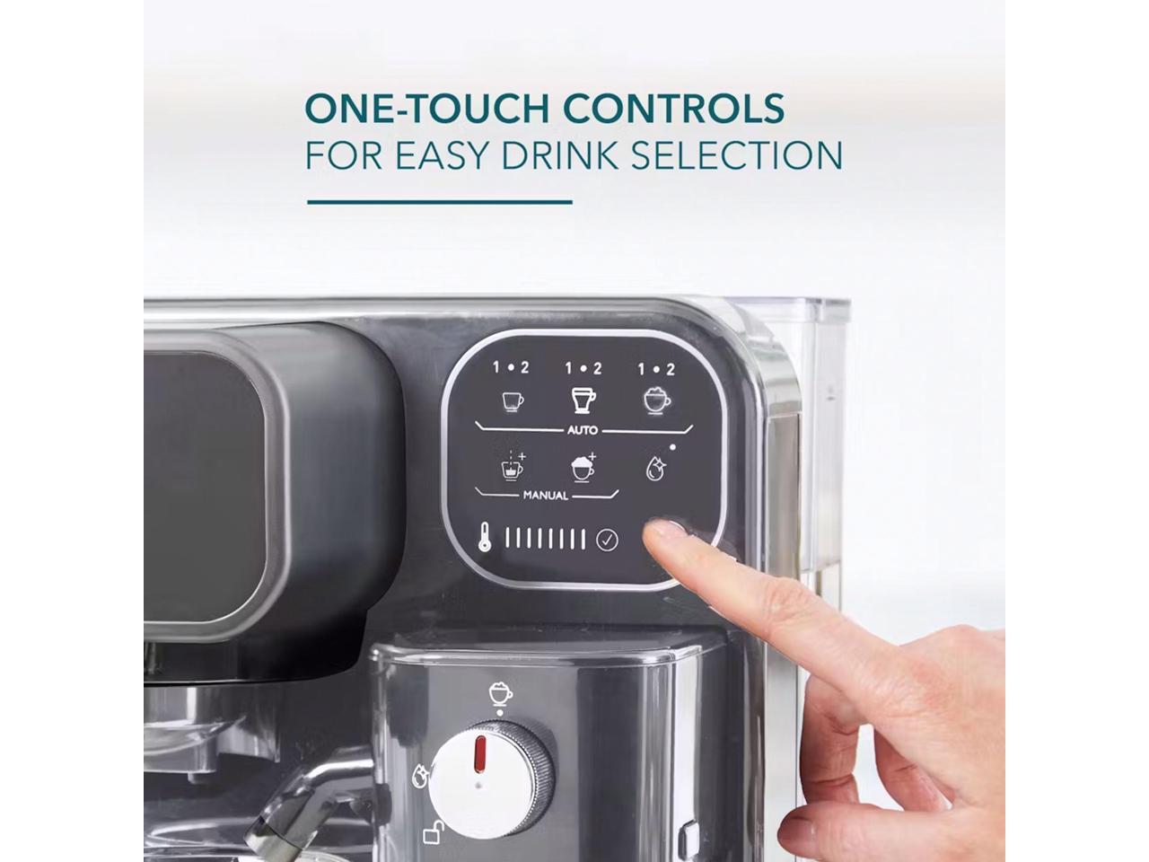 One-Touch Control Panel for Easy Drink Selection: Single or double shots of espresso, cappuccino or latte at the touch of a button