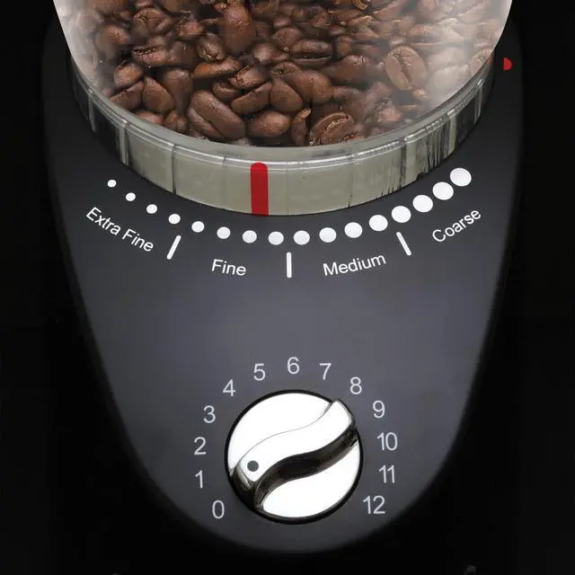 - The Infinity Plus Conical Burr Grinder will only grind when the red indicator on the bean container points to one of the fineness settings. Turn the selector knob and grinding starts instantly.