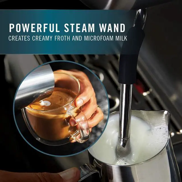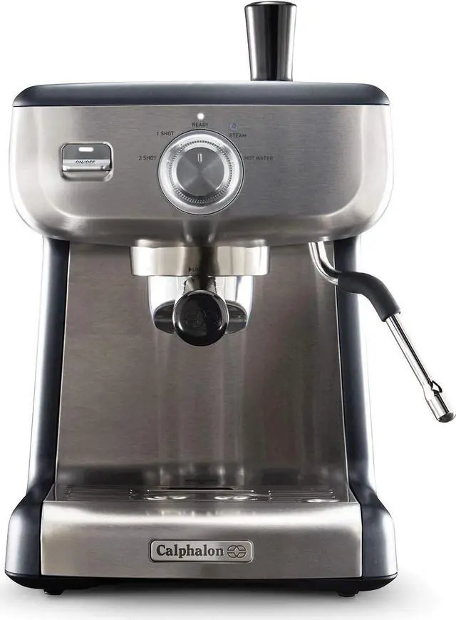 The Calphalon Temp iQ Espresso Machine uses precision heating technology to evenly heat for great-tasting espresso. The espresso machine features thermoblock heating and PID temperature control to evenly heat during the espresso extraction, combined with pre-infusion to bloom the espresso grounds for maximum flavor. A café-sized 58 mm portafilter allows for even water dispersion and robust flavor. Powerful steam wand produces creamy froth and microfoam milk for cappuccinos, lattes, and more.
