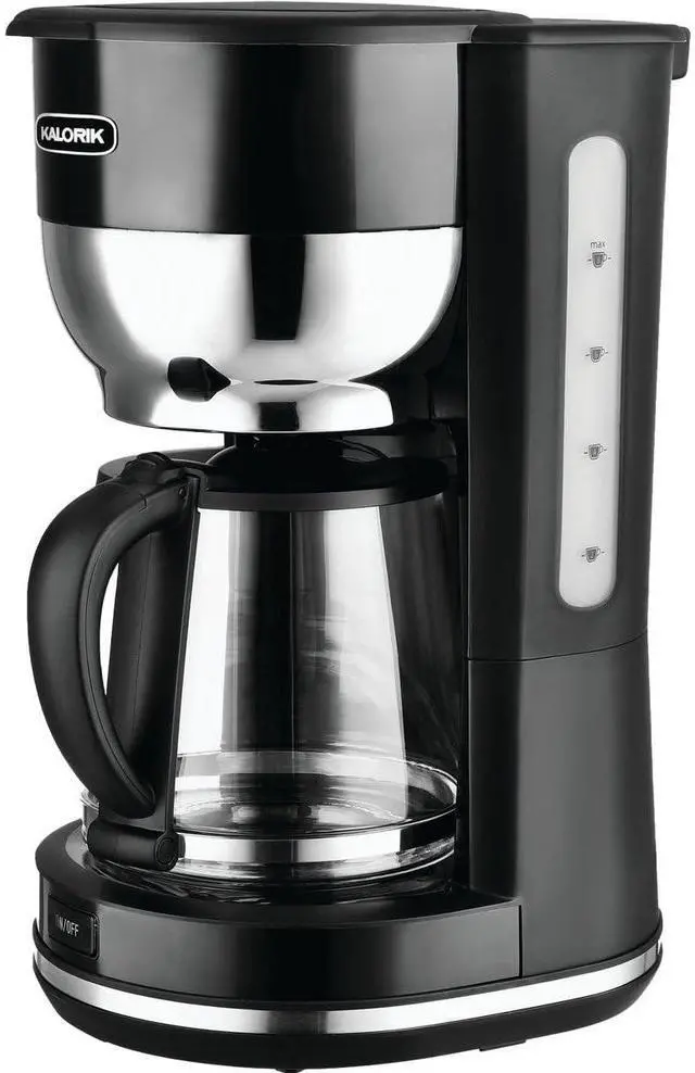 Start your day off right with the Kalorik 10 Cup Retro Coffee Maker. This iconic, mid-century inspired appliance is sure to perk you - and your kitchen decor - right up. Not only does it make a delicious brew, its retro color and chrome accents add a sleek vintage look to your kitchen. The Kalorik 10 Cup Retro Coffee Maker can brew up to 10 cups of coffee at a time. An? auto-pause? feature stops the brewing process when you remove the pitcher, so you can serve yourself (or a loved one) before brewing is complete.