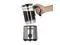 A magnetic drive motor and frothing disc deliver rich and airy frothed milk, perfect for making cappuccinos, macchiatos, lattes, and hot chocolate. The special chocolate melting function allows you to add chocolate chips or chunks directly into the pitcher to make decadent hot chocolate. The stainless steel cage prevents the stirring element from getting clogged during melting. The Bartista comes with a removable glass pitcher and a French press