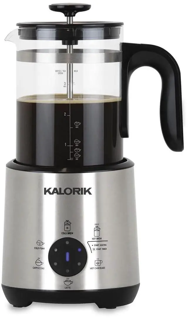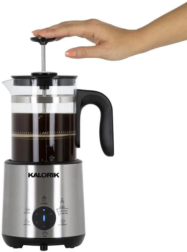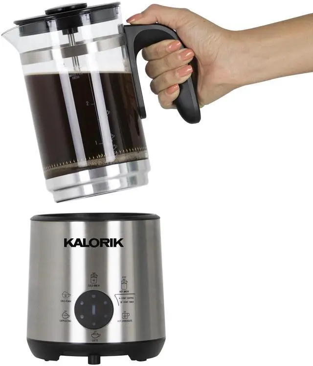 Meet your very own personal barista! This 8-in-1 beverage maker brings an authentic coffee shop feel into the comfort of your kitchen. The Kalorik Bartista gives you all the bold, flavorful benefits of a French press, with the versatility of an artisanal cafe. The Kalorik Bartista can make cold brew coffee or tea, hot coffee or tea, hot chocolate, cappuccinos, lattes and cold foam - at the touch of a button. This innovative electric French press features six one-touch presets for creating a wide variety of hot and cold barista-style beverages.