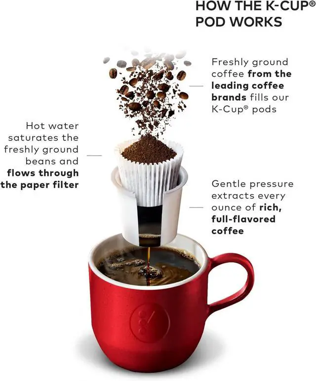 Brews multiple k-cup pod sizes: (6, 8, 10 ounce) the most popular k-cup pod brew sizes. Use the 6 ounce brew size to achieve the strongest brew.