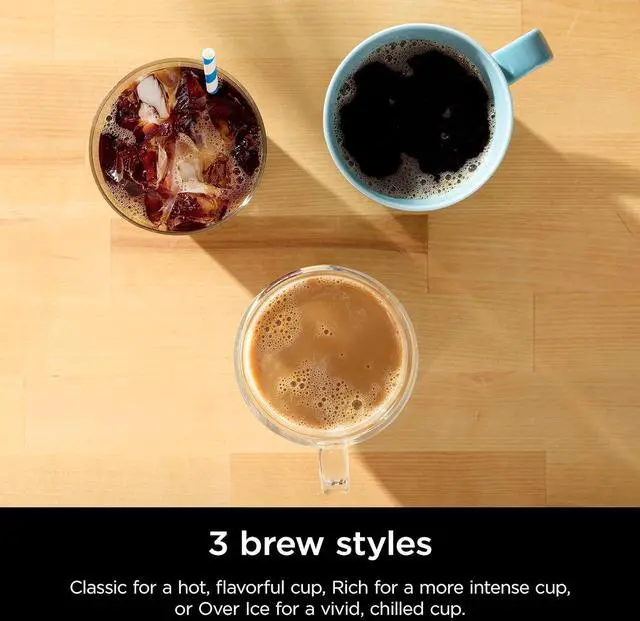 3 BREW STYLES: Select Classic, Rich, or Over Ice for your grounds or coffee pods.