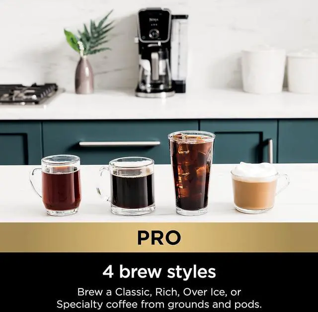 4 BREW STYLE CHOICES + TEA: Deliver optimal flavor for hot coffee, ice coffee, or tea. Select Classic, Rich, Over Ice, or Specialty for your favorite grounds or coffee pods, or water for tea.