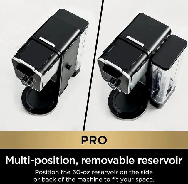 60-OZ MULTI-POSITION WATER RESERVOIR: Allows you to position the reservoir on the side or rear of the machine to fit your space, plus it is removable for easy refilling.