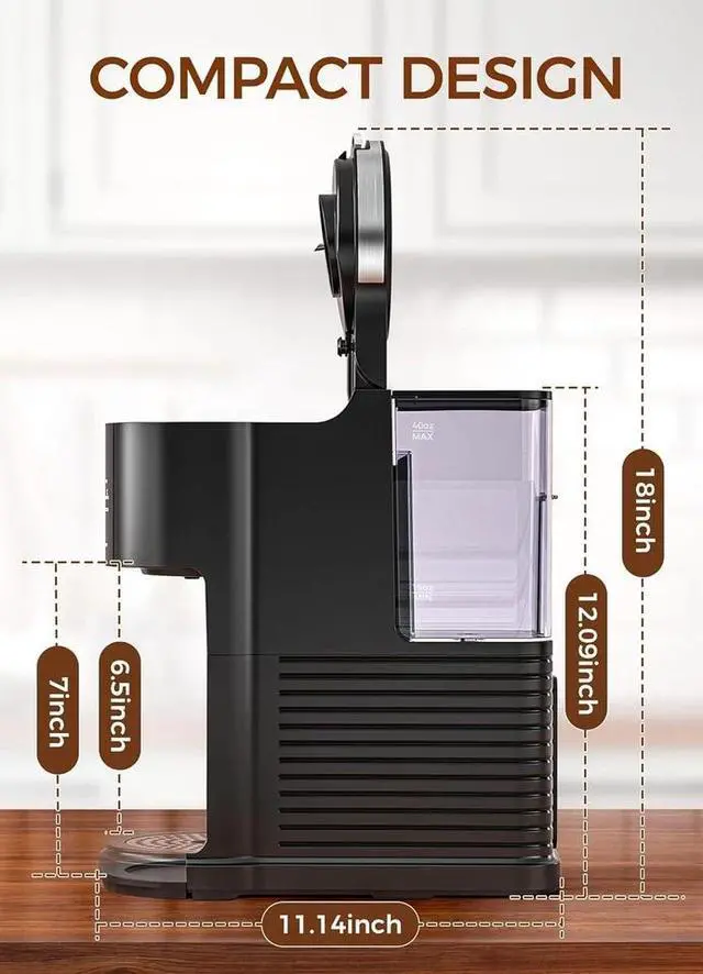 Easy to Clean: Designed for easy cleaning with a detachable 40 oz water tank and removable drip tray. The descaling indicator lights up when it's time for a thorough cleaning