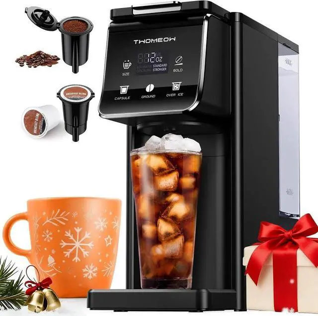 3-IN-1 COMPATIBILITY: Versatile design works with K-pods, ground coffee, and tea; includes capsule holders and reusable basket filters for eco-conscious brewing.