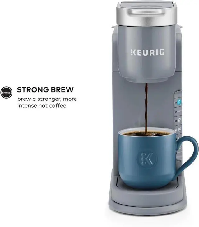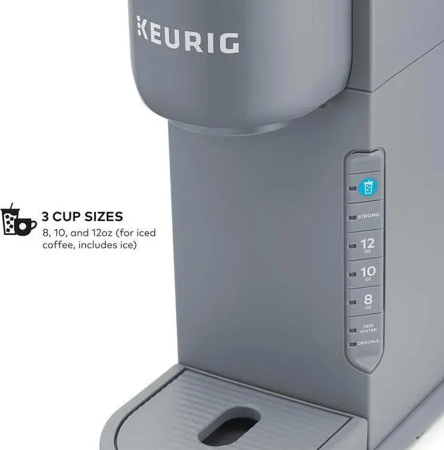 The Keurig® K-Iced coffee maker. Enjoy refreshingly delicious iced coffee and full-flavored hot coffee from one multitalented coffee maker. Brew the perfect coffee for any craving, mood, or mouthwatering moment. Always easy, always right. Its all in the blue Brew Over Ice button. One push, and the K-Iced coffee maker automatically adjusts the brew temperature, starting hotter to extract full flavor, then cooling down to minimize ice melt. All for a vibrant, balanced iced coffee that never tastes watered down. The K-Iced coffee maker also brews the same full-flavored hot coffee that you love. And if you want a stronger cup, the Strong Brew setting gives your hot coffee a bolder, more intense taste. Whether youre brewing iced or hot, choose from 3 cup sizes 8, 10, and 12oz (for iced coffee, including ice). And the 42oz removable reservoir lets you enjoy multiple deliciously refreshing cups between refills.