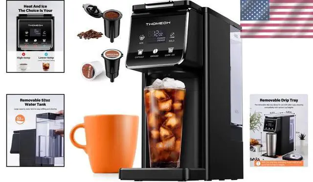 Start your day right with our versatile single-serve coffee maker that offers two flavor optionsstandard or stronger brewperfect for both hot and iced coffee. With this innovative appliance, enjoy a fresh cup tailored to your taste, whether you're craving a quick morning boost or a refreshing iced coffee. Designed for convenience and efficiency, this coffee maker features a large 52 oz removable water reservoir, allowing you to brew multiple cups without frequent refills. Choose from five brewing capacities6, 8, 10, 12, or 14 ouncesto suit your needs. The machine supports 3-in-1 compatibility, working seamlessly with K-pods, ground coffee, and tea, and comes with capsule holders and reusable filter baskets for added flexibility. Brew your favorite beverages in about a minute, enjoying fresh, hot or iced coffee fast. The removable drip tray can accommodate taller cups up to 6.8 inches, making it ideal for travel mugs and larger cups. Additionally, an energy-saving auto-off feature activates five minutes after your last brew, helping you save power. Whether at home, in the office, or on the go, this single-serve coffee maker is designed to deliver convenience, speed, and customization to your daily routine.