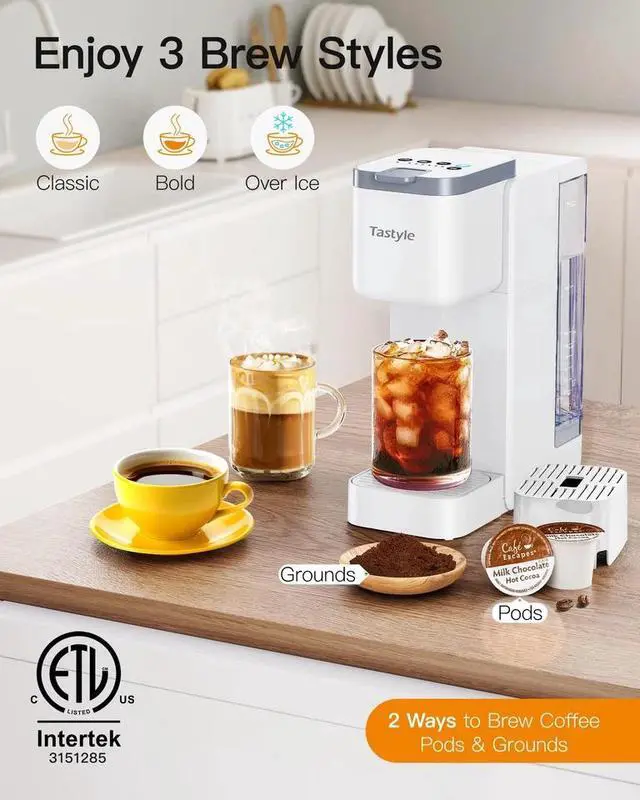 2 WAY COFFEE MEETS 3 BREW STYLES: Choose from Classic, Bold, or Over Ice for your grounds or coffee pods
